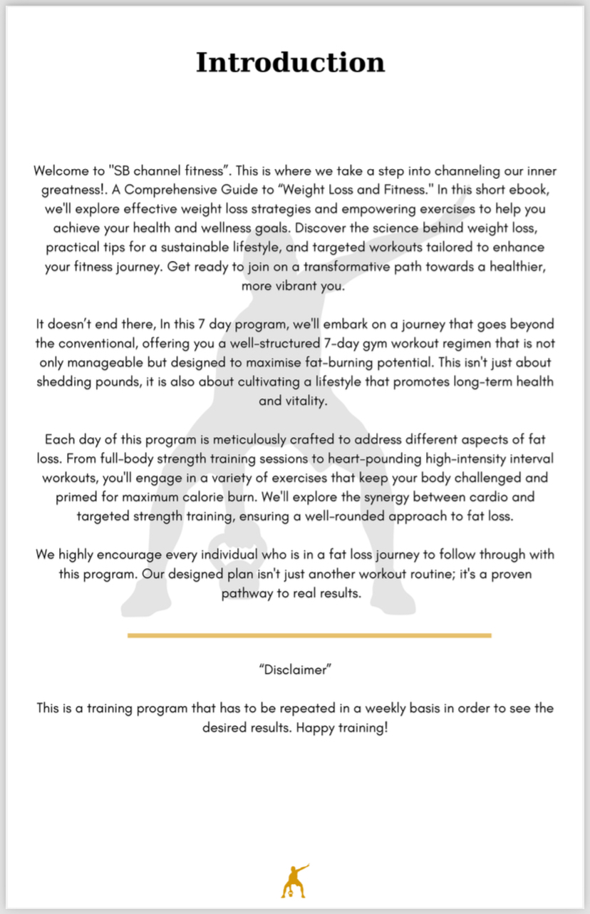 Discover a comprehensive 7-day fat loss program designed to transform your fitness journey. This eBook combines effective workout routines, and practical tips to kickstart your weight loss journey. Each day brings a new focus, from intense workouts to active recovery, providing a holistic approach to shedding unwanted fat. Packed with actionable strategies.